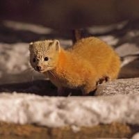 Part of the family that includes mink, otter, badger, wolverine and weasel, the sable is a genetic cousin to the pine marten, and found in the forests of Russia, Mongolia, Siberia and N. Asia. Secretive (the photo is of a mink in Japan, we couldn’t find a Russian one), solitary and mainly terrestrial, it has an individual territory of up to 30 square km. But it ranges further when prey is scarce, and also stores food in its den, which is constructed around tree roots and carpeted with grass and fur it has shed, for this eventuality. Sable have a keen sense of smell and hearing, communicating and marking territories via scent glands.
