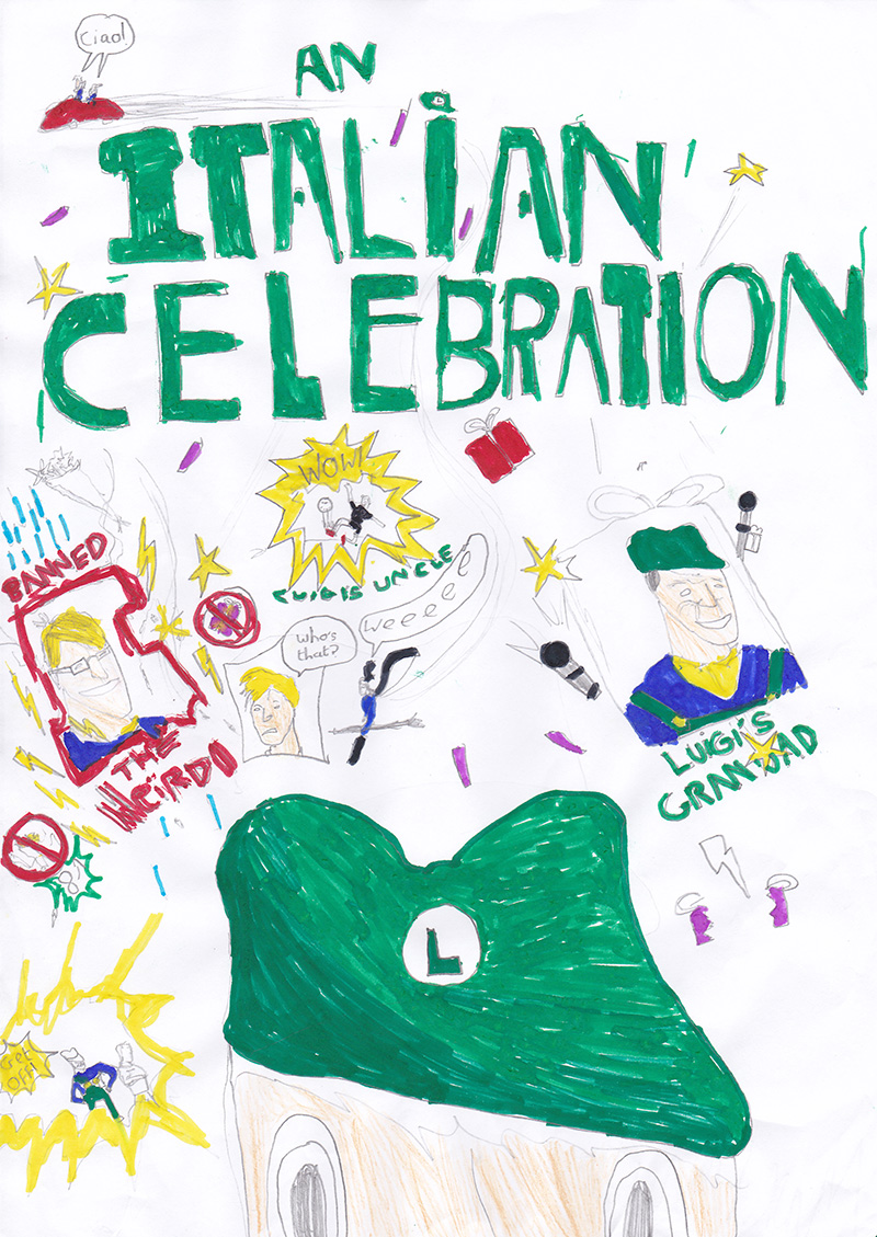 Culture and tradition in Italy. It's party time, time to find out about culture and tradition in Italy. Who is the patron saint of hairdressing, (why, St Luigi, of course), and young 21st century Luigi is celebrating today with a party to which you are all invited. Meet Luigi's family, find out what they eat, what they wear, what they drive, what music they listen to and what their favourite sport is. Then of course there is the 'mystery guest'. What will they bring to the party, and you might even get a gift from 'Befana', but what will she give you? That all depends on whether you've been good or bad! A fun and informative play. Bella! (Illustration by Max Proudlock at Hunwick Primary, County Durham)