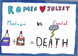 In Verona, the Montague family and the Capulet family hate each other and so do their servants. So when Romeo Montague falls in love with Juliet Capulet, you know there is trouble ahead. Can Romeo and Juliet's secret marriage eventually bring peace between the warring families? This is one of Shakespeare's most famous plays and its tragic ending still moves audiences young and old. (Illustration by Matthew McClounie at Caldew Lea Primary, Carlisle).