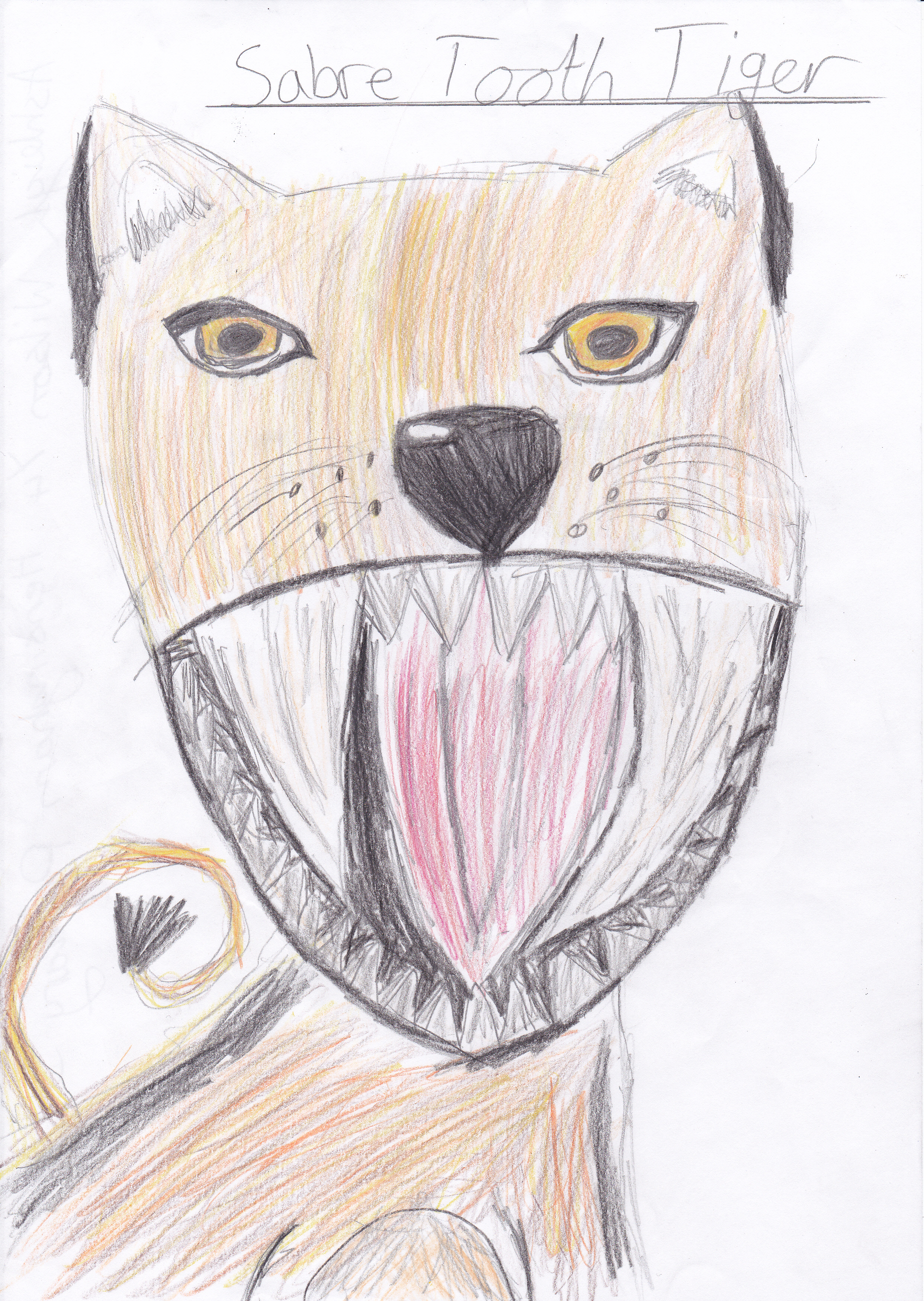 100000 years ago, and mammoths and sabre toothed tigers are on the loose. We meet an Ice Age family and learn how they ate, how they protected themselves, how they dressed and how they ensured their way of life would be known in the future. We learn how the Ice Age happened and what glaciers are. With plenty of action and even some songs, this is a great introduction to the Ice Age. (Illustration by Ashleigh Wilson at Hensingham Community Primary, Whitehaven, Cumbria)
