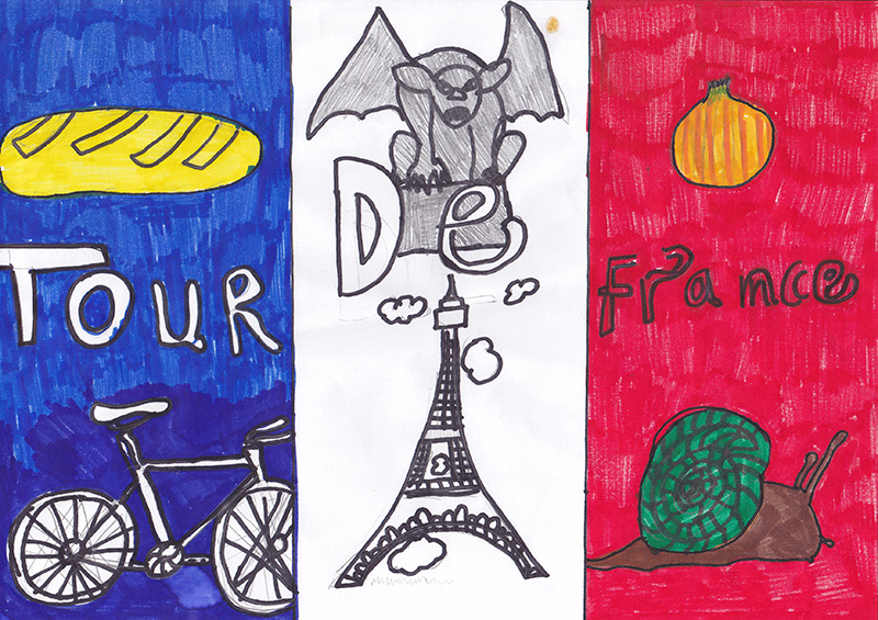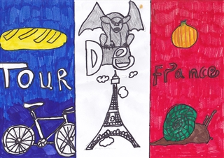Bonjour, mes amis, join us as we take you on a tour de france, literally stopping off at the Cannes film festival and then the Alps, taking in a couple of vineyards and a glass of champagne on the way. We end in Paris at the Eiffel Tower and Notre Dame. This is a highly entertaining and informative play where actors play everything from a French car to a French waiter, from a wine taster to a gargoyle and there's even the odd French word.lllustration by Katy Rainforth at Channel Kirk Primary, Borders).