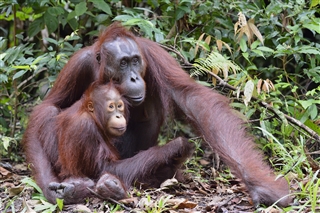 However, when orangutans are forced to live closely together they don’t interact as much because they are stressed. Consequently, learning is not shared so widely. This means they are less able to adapt to change and cope in times of difficulty. For example finding ‘fallback’ food; this is food that isn’t so good but is okay when the usual food plants cannot be found. This is happening now as a result of deforestation (cutting down natural forests to plant crops for humans). According to the IUCN, all of the great apes (except humans) are either Endangered or Critically Endangered.